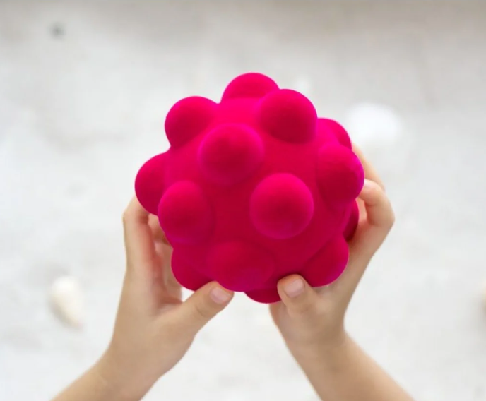 把 Rubbabu 感官球放進寶寶手裡的那一刻, 你會看見他眼睛發亮,然後⋯開始用盡全力把球塞進嘴裡(完全安全)!